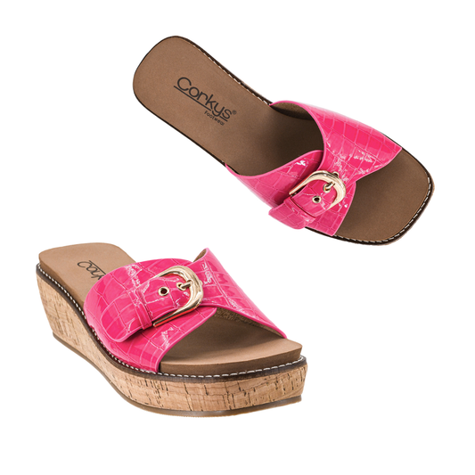 Buckle Accent Slide Wedge Sandal
